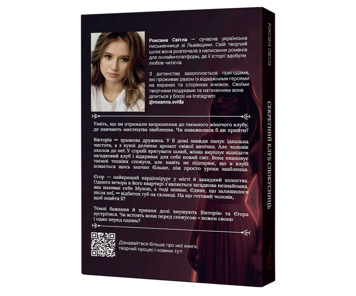 Пристрасна та психологічно насичена історія про Вікторію — зразкову дружину, яка випадково опиняється в загадковому жіночому клубі, де навчають мистецтва зваблення. Відкриваючи нові сторони себе, вона стикається з непростим вибором між обов’язком і справжніми бажаннями. У її долю втручається харизматичний кардіохірург Єгор, і ця зустріч змінює все. Роман досліджує межі спокуси, силу внутрішніх трансформацій та пошуки справжніх почуттів.